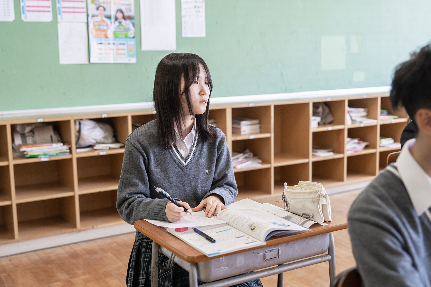 休み時間や放課後に3年生を中心に進路について相談に来る生徒も多く、来校者からいただいた情報や企業からの配布物をできるだけ早く生徒のもとに届けるようにしています。生徒や担任と情報共有を行い、一人ひとりの考えに沿った情報を提供し、進路の決定で満足できるように留意しています。