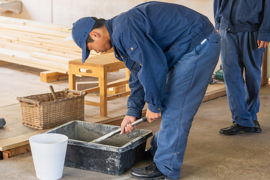 「木工」は木材を加工して、椅子や机などの家具を作ります。授業で製作した家具は地域の施設で使用していただいています。