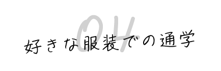 制服は任意。男女夏服冬服いろいろ揃えています。が、基本的には私服でOKなので制服の組み合わせも自由です。もちろん個性あふれる私服で登校してください。