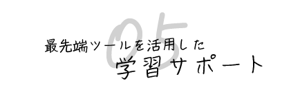 本校では最新の教育ツールを導入し、学習をよりスムーズに進められるようサポートしています。映像授業は繰り返し視聴できるため、理解できるまで学び直しが可能。さらに学習の進捗状況を可視化するシステムを活用し、自分の成長を実感しながら取り組めます.中学校の勉強や英検などの資格の勉強などもできますよ。