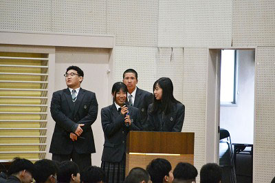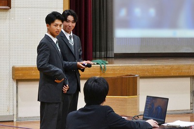 年間行事の動画を見たり、部活動の紹介をしたり、留学生についてのお話もありました。