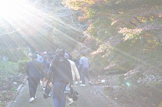 毎年行っている行事、「桜渓参拝」に全校生徒と教職員で歩いて行きました。